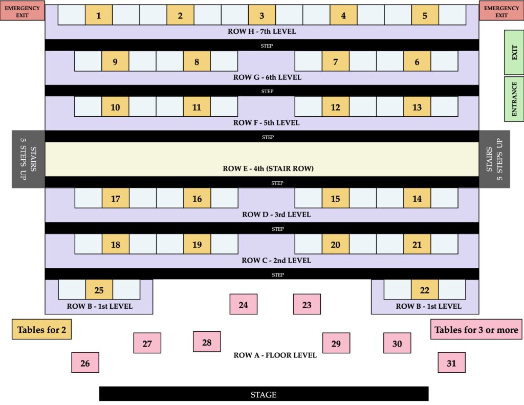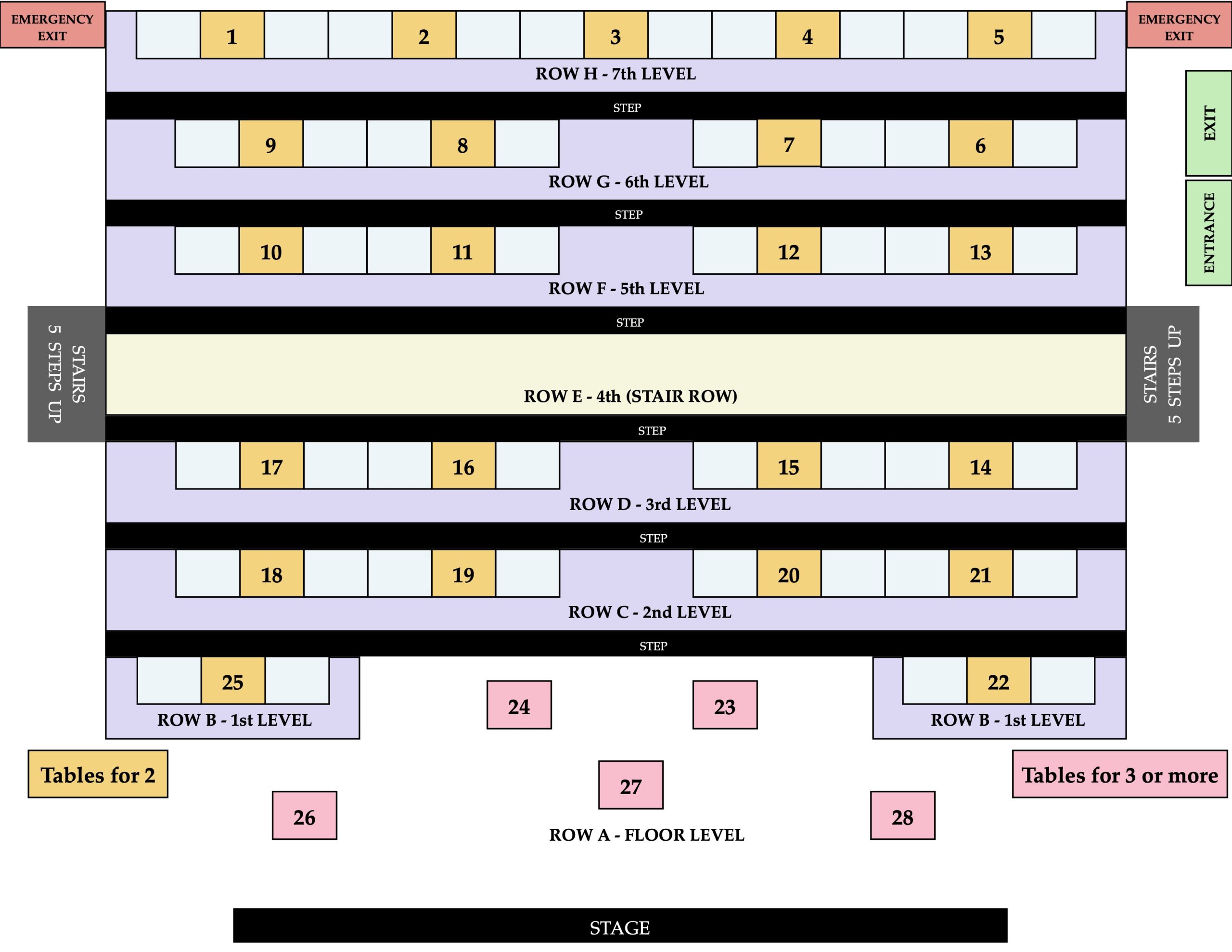 Tables available (See seating map).